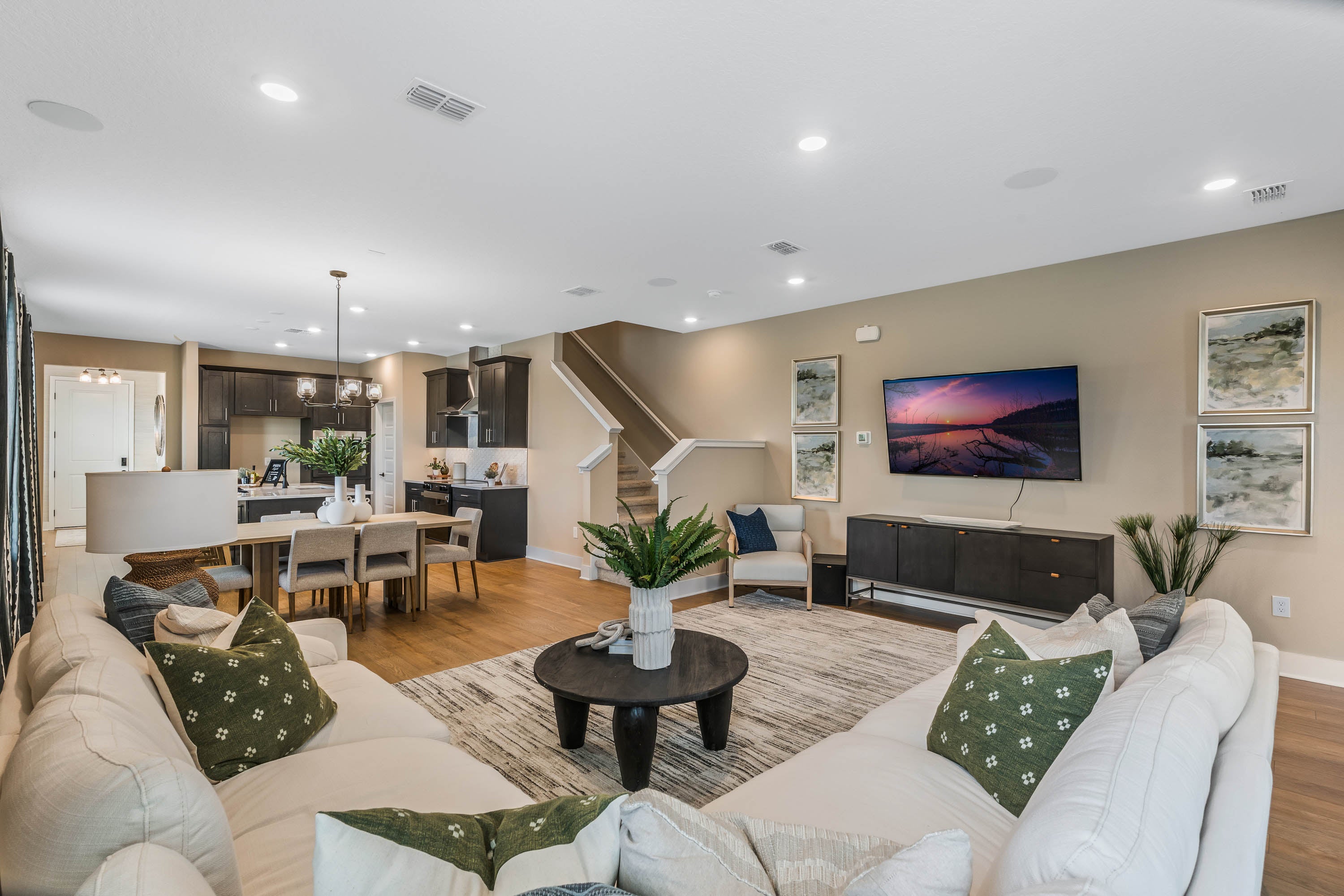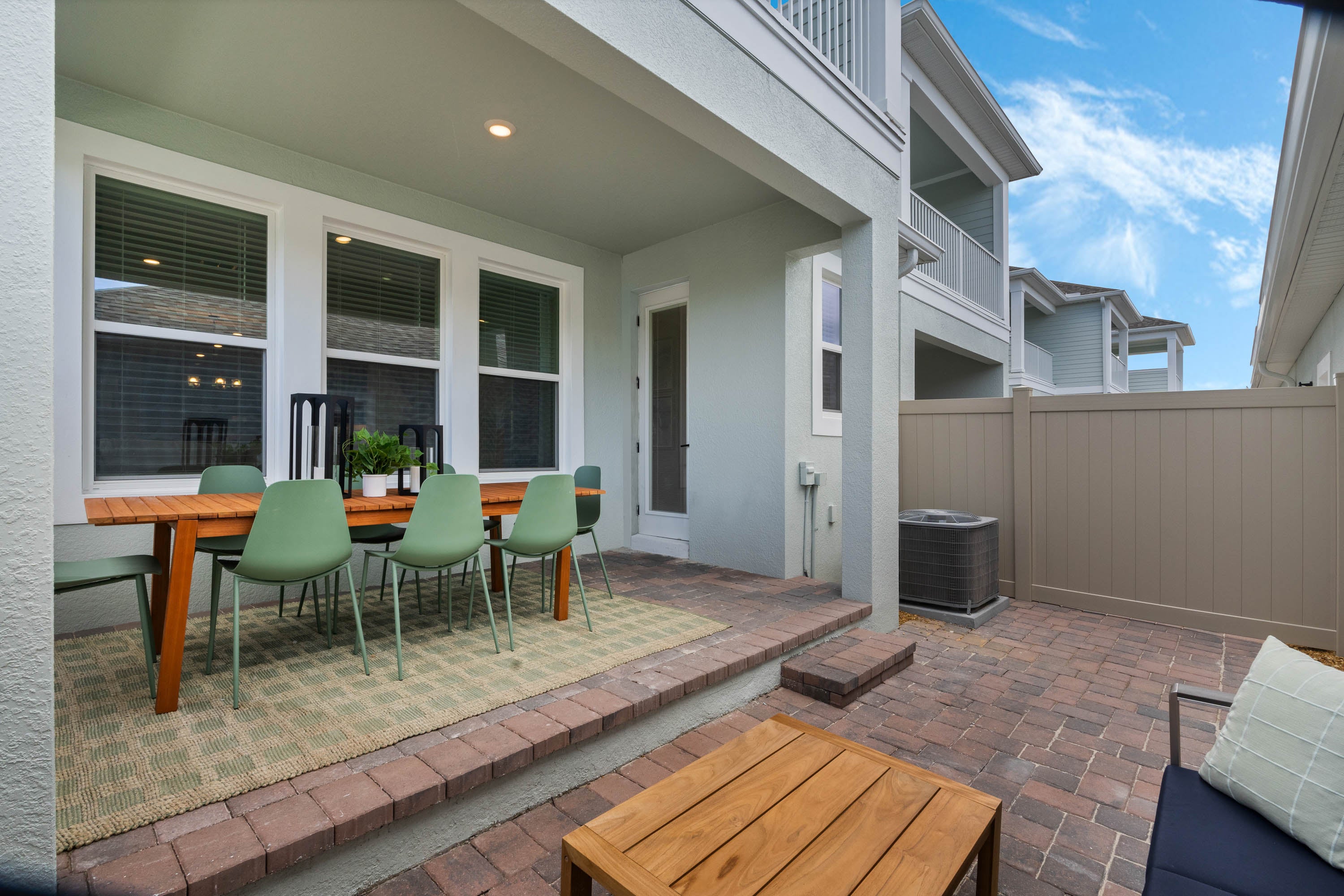 Luxury new townhome by RockWell Homes with 4 bedrooms, 3 bathrooms, covered patio, covered front porch, covered balcony and two car garage. Kitchen is complete with island, upgraded solid surface flooring, stainless steel appliances, oven, vent hood, microwave, dishwasher, upgraded cabinets, Delta faucets, walk in pantry, undermount sink, lighting package, ceramic tile backsplash, 42-inch cabinets and dining area. Open living-kitchen area with upgraded flooring, abundant energy efficient windows allowing natural light throughout with access to the covered back yard lanai. Primary suite with dual vanity sinks, oversized shower with ceramic tile, ceramic tile flooring, Delta faucets, lighting package, towel bars, walk in closet, window and covered balcony. Secondary bedrooms complete with full bath ceramic tile flooring, ceramic tile tub shower surround, Delta faucets, lighting package and towel bars. In addition, this new home is complete with landscaping package, 8ft front door, elevated ceilings, back yard living, covered lanai, covered balcony, energy efficient construction, garage door opener, sprinkler system, new home warranty and more!