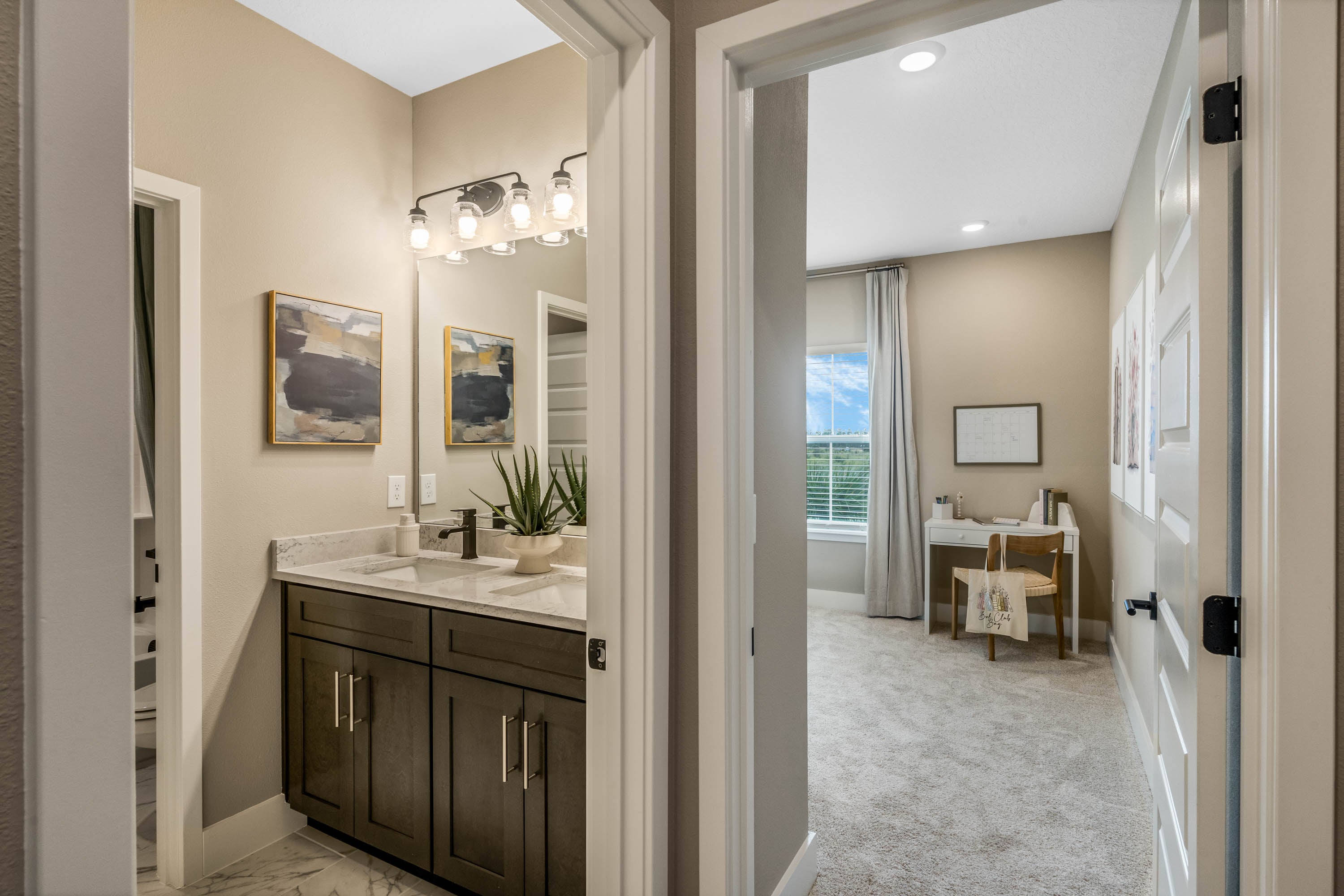 From Downtown Orlando take I-4 W for about 16 miles and take exit 65 toward Wide World of Sports/Animal Kingdom. Keep right at the fork and follow signs for Osceola Pkwy/Wide World of Sports/Animal Kingdom. Merge onto W Osceola Pkwy and continue for about 2 miles then take the ramp to Disney's All-Star Resort/Blizzard Beach. Turn right onto W Buena Vista Dr and continue for 0.7 miles then turn left onto Flamingo Crossings Blvd/Hartzog Rd. Continue for 1.7 miles and turn right onto Autumn Harvest Ave and then left onto Scarlet Aster Alley. Model home at 14006 Scarlet Aster Alley Winter Garden FL 34787.