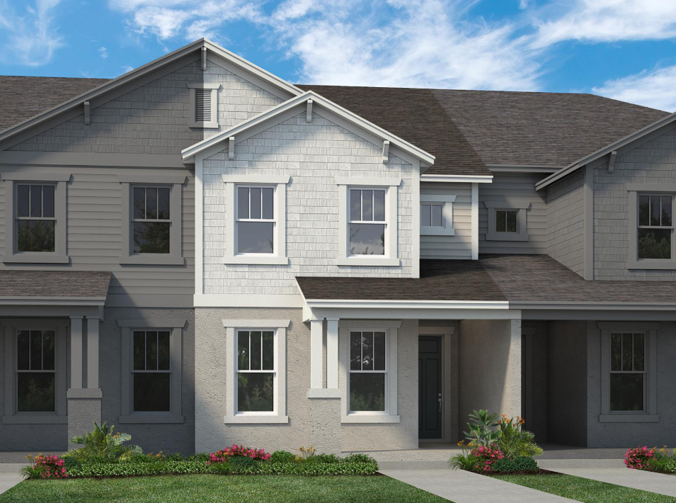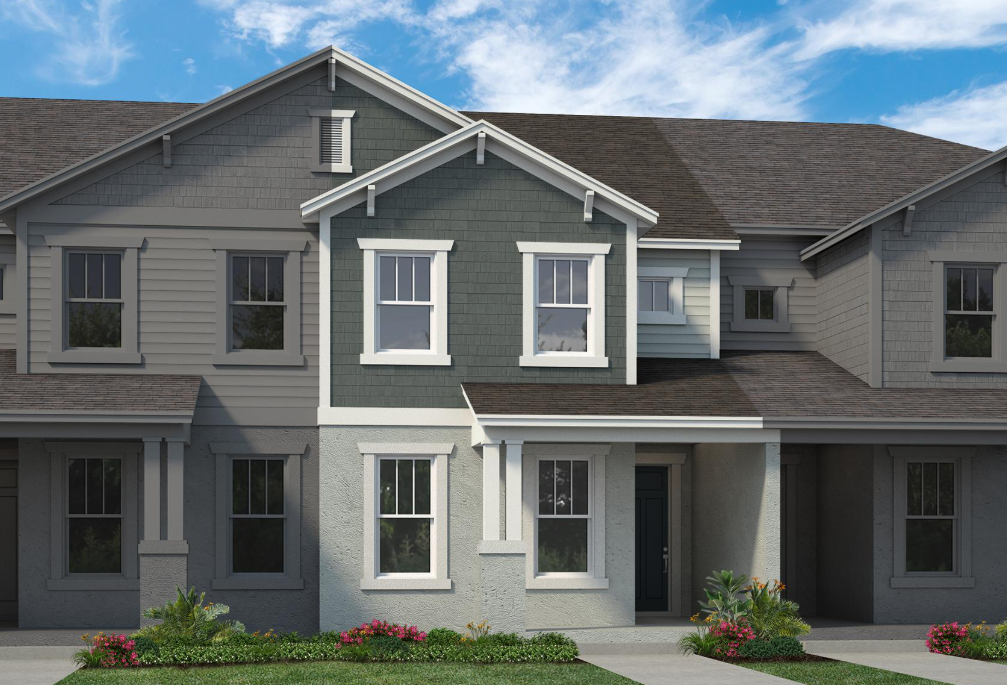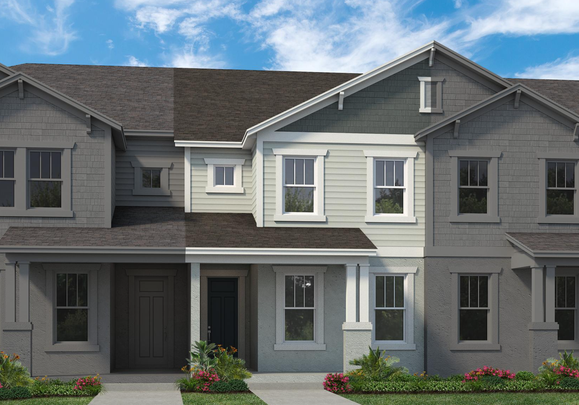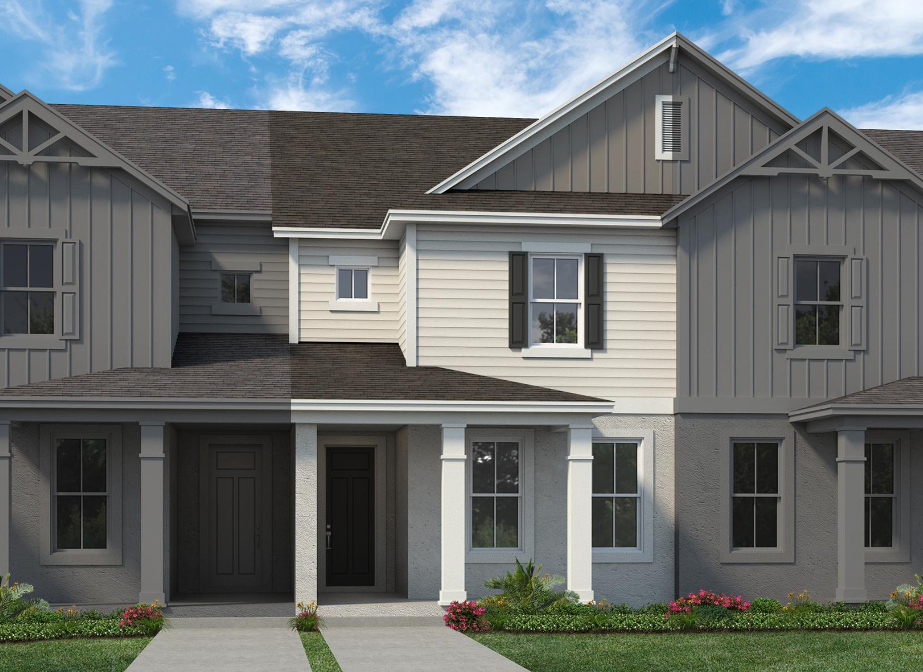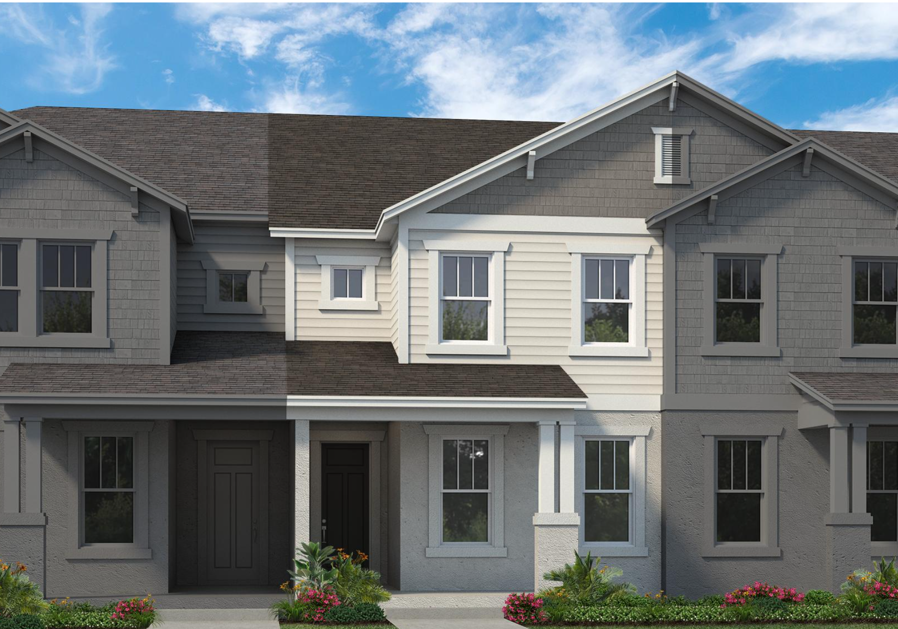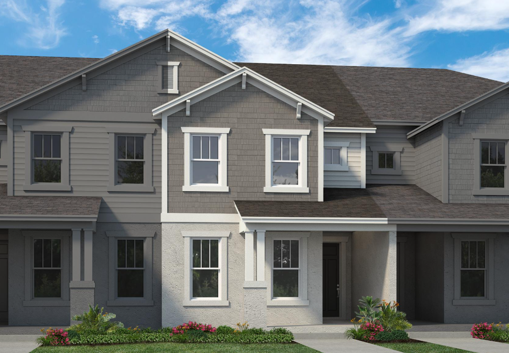 Experience luxury living in this stunning new townhome by RockWell Homes, featuring 3 bedrooms, 3 bathrooms and 2-car garage. With a covered lanai, charming front porch, and private covered balcony, this home is designed for both relaxation and entertaining. The chef’s kitchen is a highlight, featuring an island, upgraded solid surface flooring, and high-end stainless steel appliances, including a cooktop, oven, microwave, and dishwasher. The space also boasts upgraded cabinets, Delta faucets, a walk-in pantry, an undermount sink, a stylish lighting package, a ceramic tile backsplash, and generous 42-inch cabinets, all seamlessly connecting to the dining area. The open living-kitchen area is bright and inviting, enhanced by upgraded flooring and abundant energy-efficient windows that flood the space with natural light. Enjoy easy access to the covered backyard lanai, perfect for outdoor living. Retreat to the spacious primary suite, featuring dual vanity sinks, an oversized shower with elegant ceramic tile, ceramic tile flooring, Delta faucets, a thoughtful lighting package, towel bars, and a walk-in closet. A window and covered balcony complete this serene oasis. The secondary bedrooms are well-appointed, sharing a full bath that includes ceramic tile flooring and a tub shower surround, along with Delta faucets, a lighting package, and towel bars for added convenience. This exceptional townhome comes with a full landscaping package, an 8-foot front door, elevated ceilings, and numerous outdoor living spaces, including a covered lanai and balcony. Additional features include energy-efficient construction, a garage door opener, a sprinkler system, smart home and a new home warranty, ensuring a comfortable and stylish living experience.