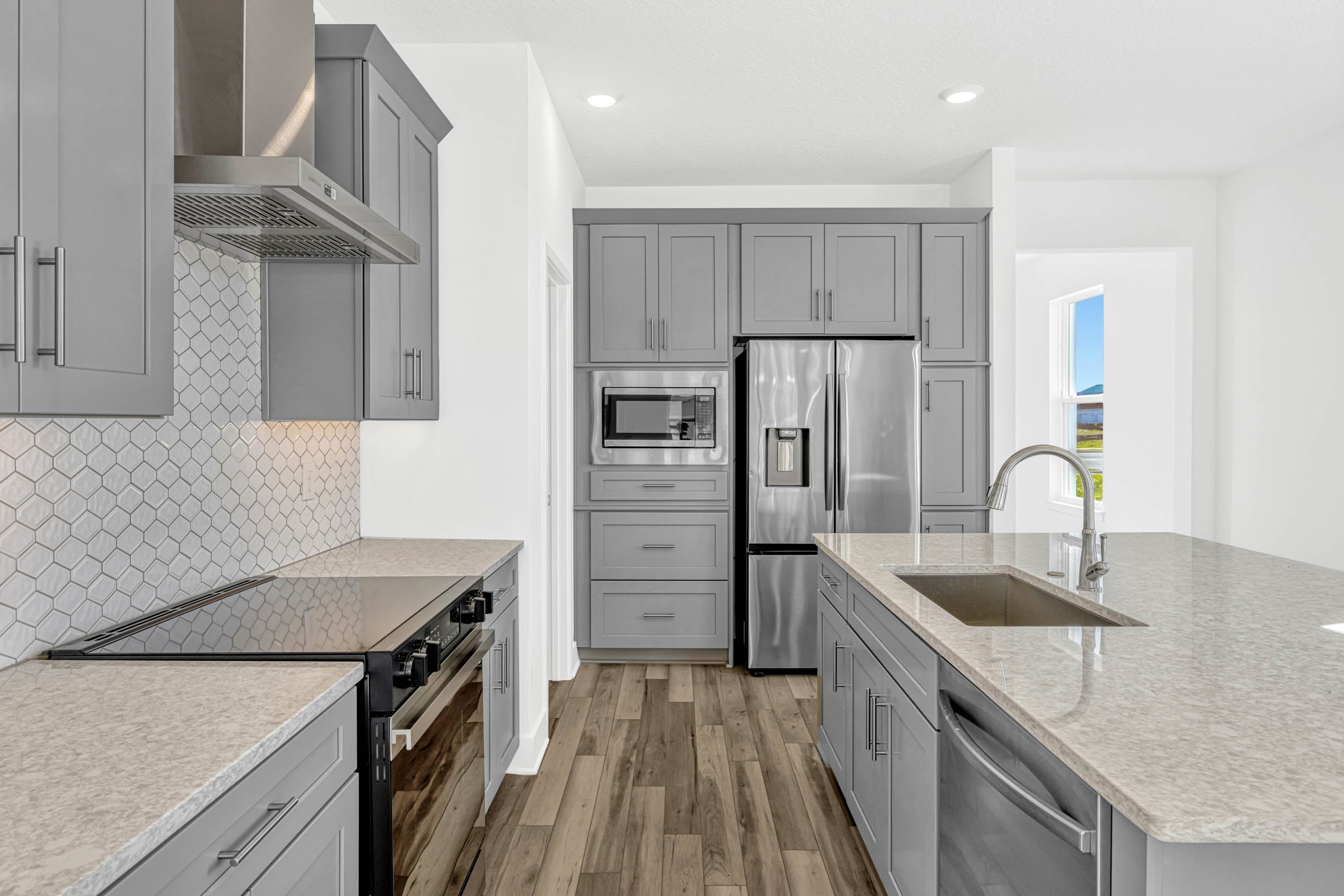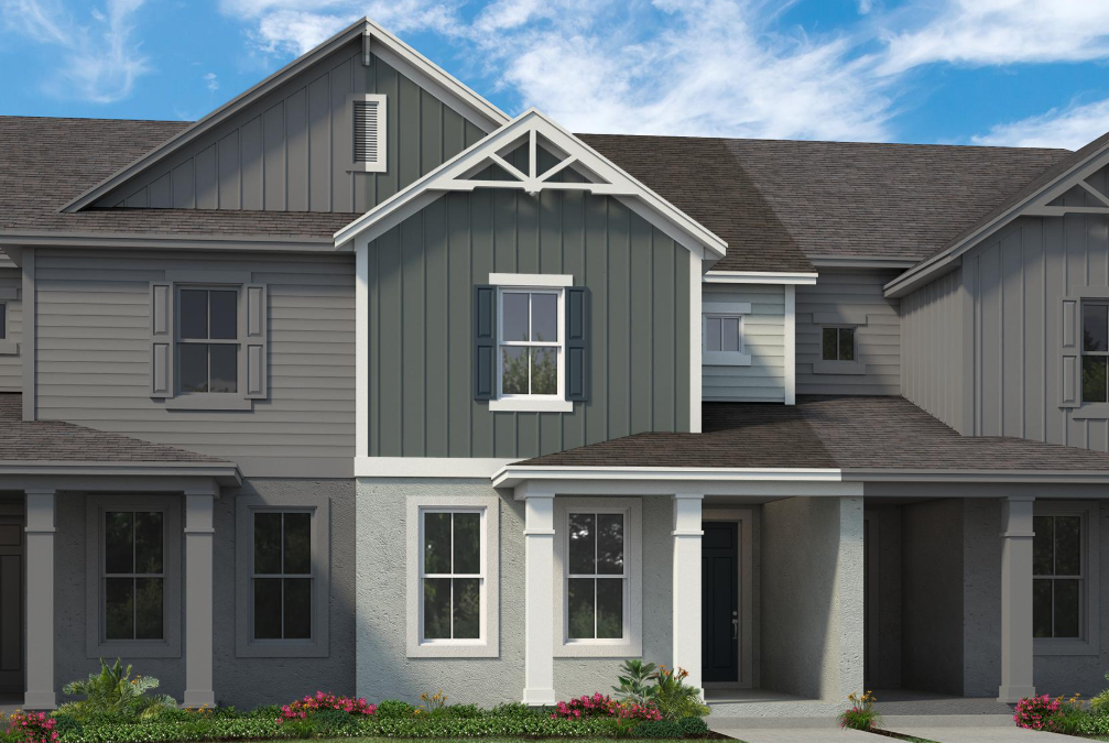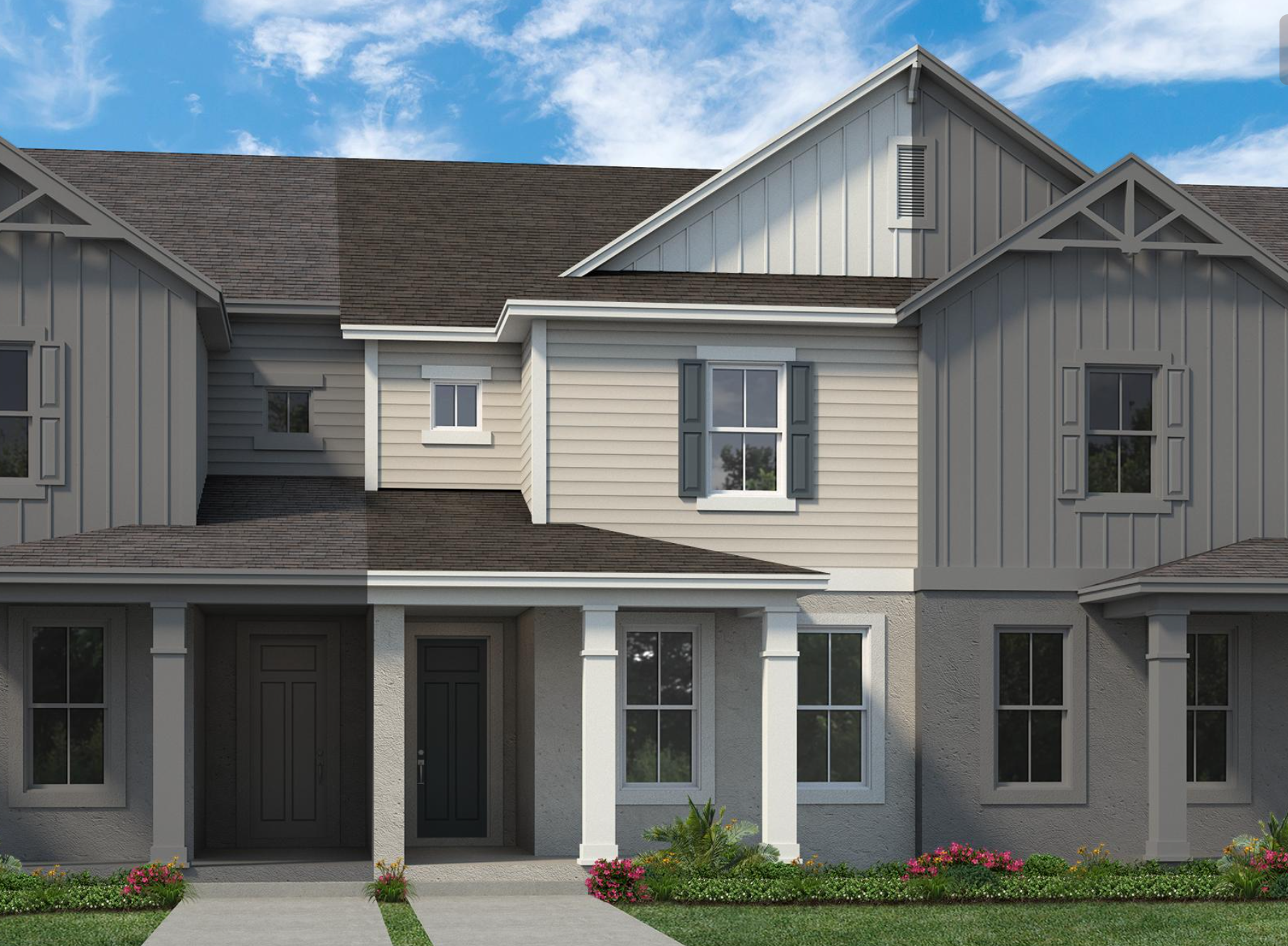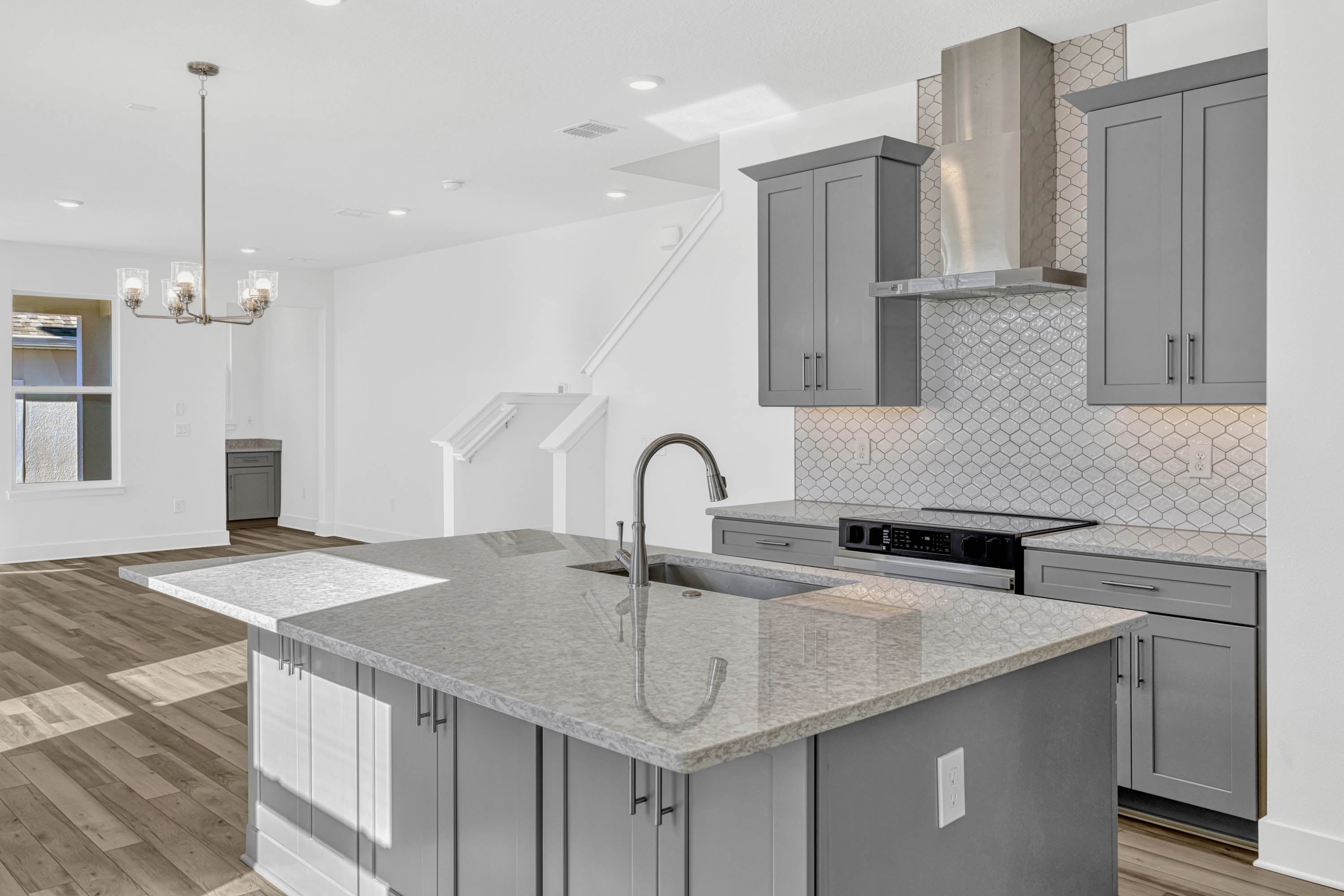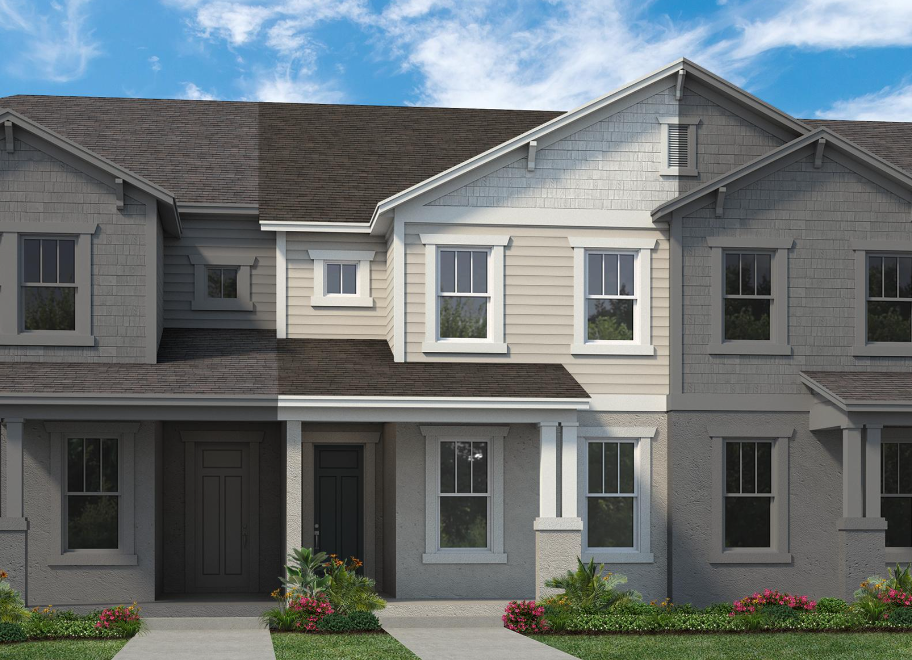 Experience luxury living in this stunning new townhome by RockWell Homes, featuring 3 bedrooms, 3 bathrooms and 2-car garage. With a covered lanai, charming front porch, and private covered balcony, this home is designed for both relaxation and entertaining. The chef’s kitchen is a highlight, featuring an island, upgraded solid surface flooring, and high-end stainless steel appliances, including a cooktop, oven, microwave, and dishwasher. The space also boasts upgraded cabinets, Delta faucets, a walk-in pantry, an undermount sink, a stylish lighting package, a ceramic tile backsplash, and generous 42-inch cabinets, all seamlessly connecting to the dining area. The open living-kitchen area is bright and inviting, enhanced by upgraded flooring and abundant energy-efficient windows that flood the space with natural light. Enjoy easy access to the covered backyard lanai, perfect for outdoor living. Retreat to the spacious primary suite, featuring dual vanity sinks, an oversized shower with elegant ceramic tile, ceramic tile flooring, Delta faucets, a thoughtful lighting package, towel bars, and a walk-in closet. A window and covered balcony complete this serene oasis. The secondary bedrooms are well-appointed, sharing a full bath that includes ceramic tile flooring and a tub shower surround, along with Delta faucets, a lighting package, and towel bars for added convenience. This exceptional townhome comes with a full landscaping package, an 8-foot front door, elevated ceilings, and numerous outdoor living spaces, including a covered lanai and balcony. Additional features include energy-efficient construction, a garage door opener, a sprinkler system, smart home and a new home warranty, ensuring a comfortable and stylish living experience.