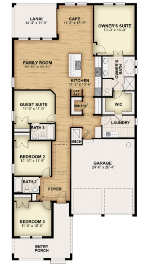 New Single-Story Home by RockWell Homes, selling from offsite sales center: 14006 Scarlet Aster Alley Winter Garden, FL 34787. The Hemingway Plan on Homesite #265. Introducing a beautifully designed, new single-story home perfect for modern living. This home offers 4 spacious bedrooms, 3 bathrooms, and a functional layout with a dining area, breakfast nook, and a 2-car garage. The inviting exterior includes a covered front porch and a covered backyard lanai, with multiple upscale design options to suit your style. Step inside to discover a thoughtfully designed kitchen featuring an eat-in island, solid surface countertops, and high-end stainless-steel appliances, including a cooktop, microwave, oven, dishwasher, and vent hood. The kitchen is further enhanced by upgraded 42-inch cabinets, a ceramic tile backsplash, an undermount sink, a Delta faucet, and a butler’s pantry for extra storage. A walk-in storage pantry provides ample space, while the lighting package adds a touch of elegance to the space. The primary suite serves as a private retreat, featuring a dual sink vanity, a ceramic tile shower with a glass enclosure, and ceramic tile flooring. Upgraded Delta faucets, a walk-in closet, stylish lighting, and towel bars complete this serene space. The two secondary bedrooms offer generous closet space and share a full bathroom that includes ceramic tile flooring, a ceramic tile tub/shower surround, Delta faucets, lighting, and towel bars for both style and convenience. Additional highlights of this new home include an 8-foot front door, dual-pane energy-efficient windows, a new home warranty, a full landscaping package, and a garage door opener. The utility area is also finished with durable ceramic tile, adding both function and style to the home. With its ideal blend of luxury, functionality, and energy efficiency, this single-story home by RockWell Homes offers the perfect space for comfortable, modern living.