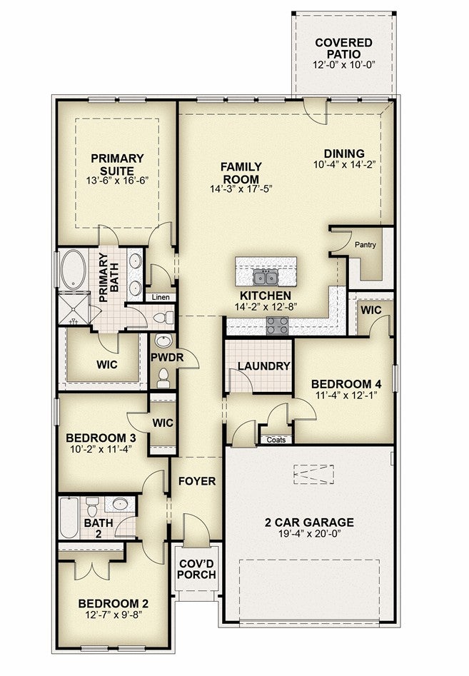 The new single-story Liberty home plan by RockWell Homes is thoughtfully designed to offer spacious and modern living. Featuring 4 bedrooms and 2.5 bathrooms, this new home includes a 2-car garage and a striking exterior with full brick, complemented by a covered front porch, covered patio and energy-efficient dual-pane windows. Inside, the open-concept layout seamlessly integrates the kitchen, living, and dining areas, all situated at the back of the home for added privacy and natural light overlooking the covered patio. The kitchen boasts an island with bar-top seating, solid surface countertops, an undermount sink, stainless steel gas appliances, dishwasher, microwave, gas range, ceramic tile backsplash, Delta faucet, lighting package, 42-inch upper cabinets, upgraded flooring and a huge walk-in pantry. The kitchen is open to the spacious family and dining area. The primary bedroom suite, also located at the back of the home, offers dual sink vanities with solid surface countertops, a garden tub, a ceramic tile shower with a glass enclosure, ceramic tile flooring, lighting package, upscale cabinetry, towel bars, Delta faucets, luxury countertops, private water closet and large walk-in closet. Secondary bathrooms feature ceramic tile flooring and tub/shower enclosures, lighting package, Delta faucets, upscale cabinets, under mount sinks, luxury countertops and towel bars. The secondary bedrooms offer walk-in closets, ceiling fan pre-wires and carpet flooring. Additional highlights of this new home by RockWell Homes include a powder bathroom, full landscaping package, a fully automated sprinkler system, full gutters, 8-foot front door, fully fenced in private back yard with gate, a garage door opener, a ceramic tile utility area, full brick exterior, energy efficient construction, buff mortar, back yard covered patio and a new home warranty, ensuring comfort and convenience in every detail.