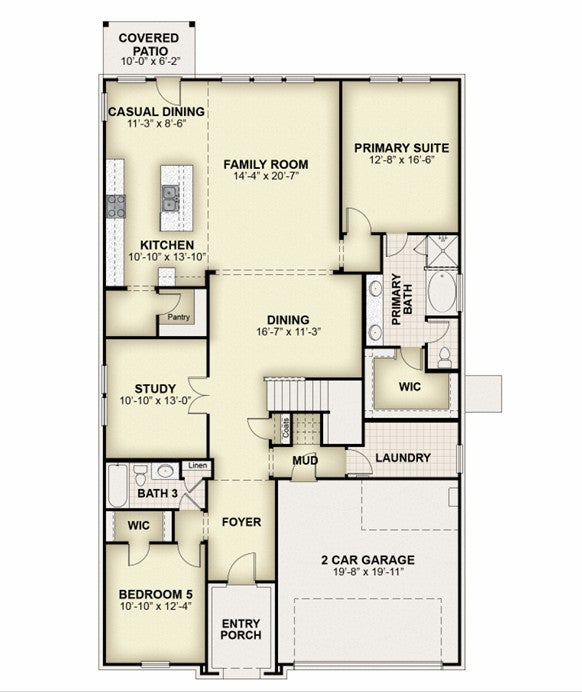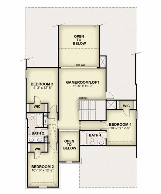 The new two-story home by RockWell Homes offers a spacious and versatile design, featuring 5 bedrooms, 4 bathrooms, along with a dining room, home office, gameroom, and a 2-car garage. The exterior showcases full brick, complemented by a covered porch and dual-pane energy-efficient windows. Inside, the open-concept layout places the living, kitchen, and dining areas at the back of the home, with the kitchen boasting an island with bar stool seating, solid surface countertops, stainless steel appliances, range, dishwasher, microwave, ceramic tile backsplash, 42-inch cabinets, Delta faucet, recessed can lighting and a walk-in pantry. The living area is bathed in natural light from multiple dual-pane windows. The primary suite, conveniently located on the first floor, features a garden tub, ceramic tile shower with glass enclosure, dual sink vanity, walk-in closet, and upscale Delta faucets. A guest suite is also on the main floor with a full bathroom. Upstairs, secondary bedrooms all include walk-in closets, and the secondary bathrooms offer ceramic tile flooring and tub/shower surround. Additional highlights include a full sprinkler system, landscaping package, full gutters, garage door opener, ceramic tile utility area, vaulted ceilings, fully fenced in private back yard and a new home warranty.