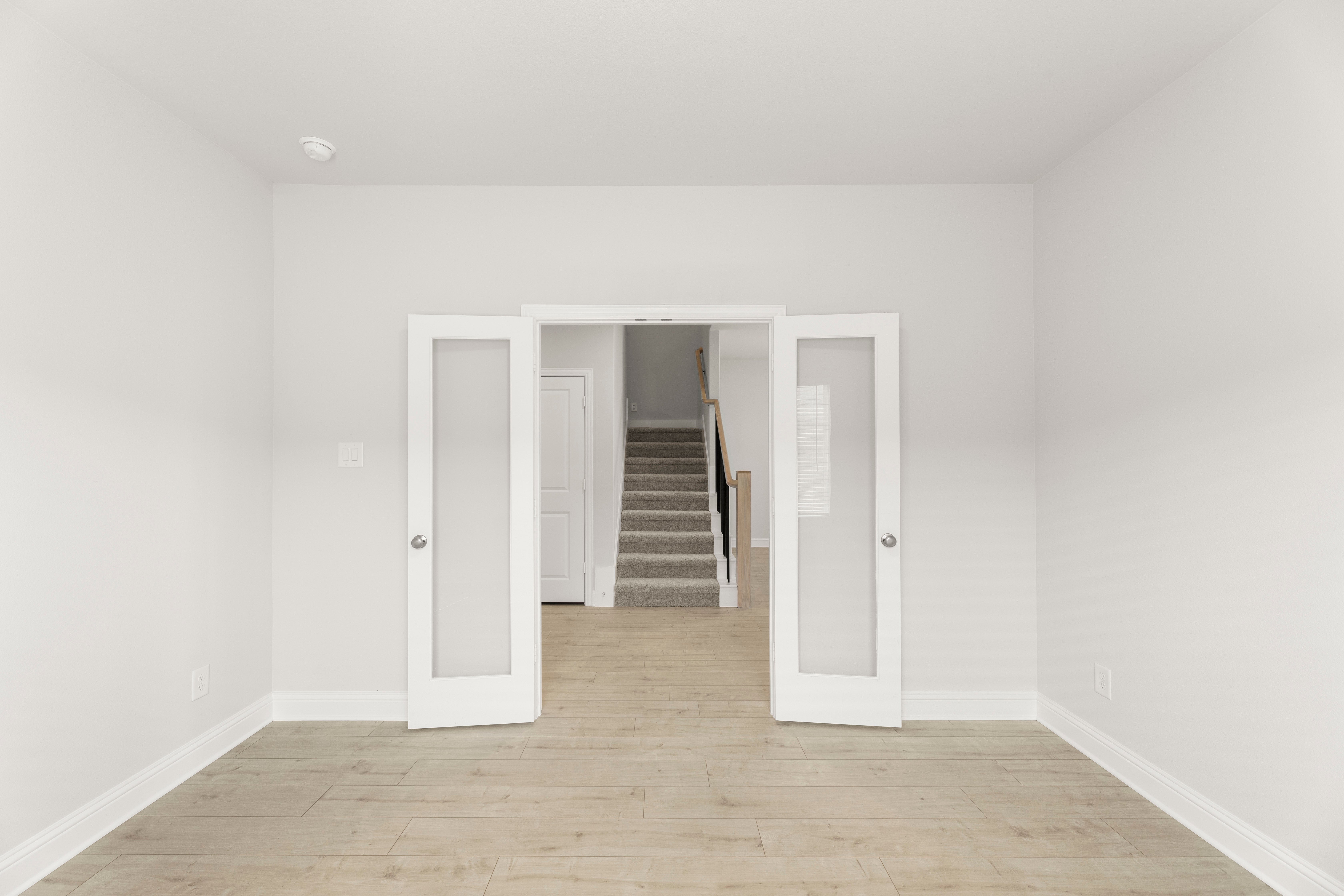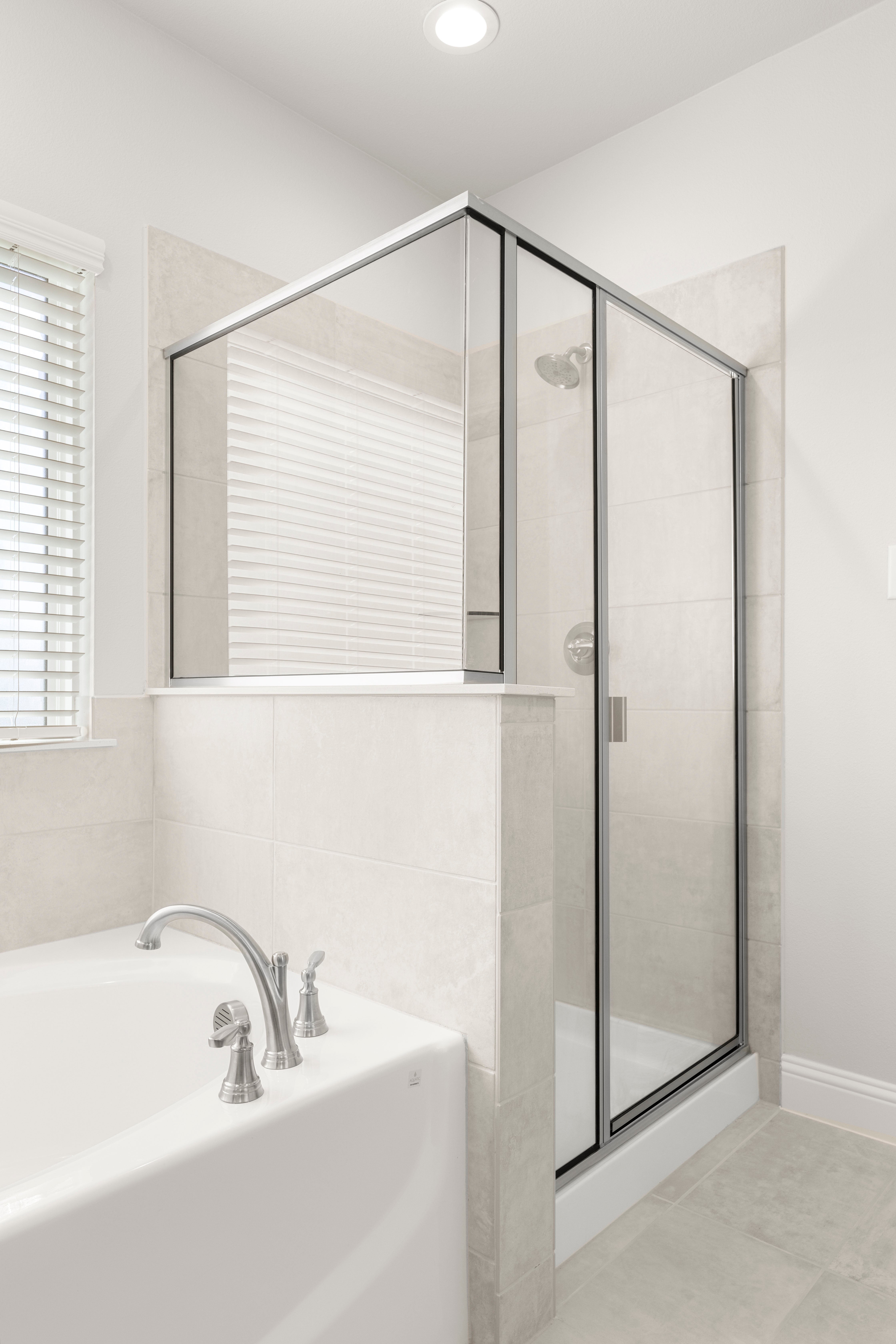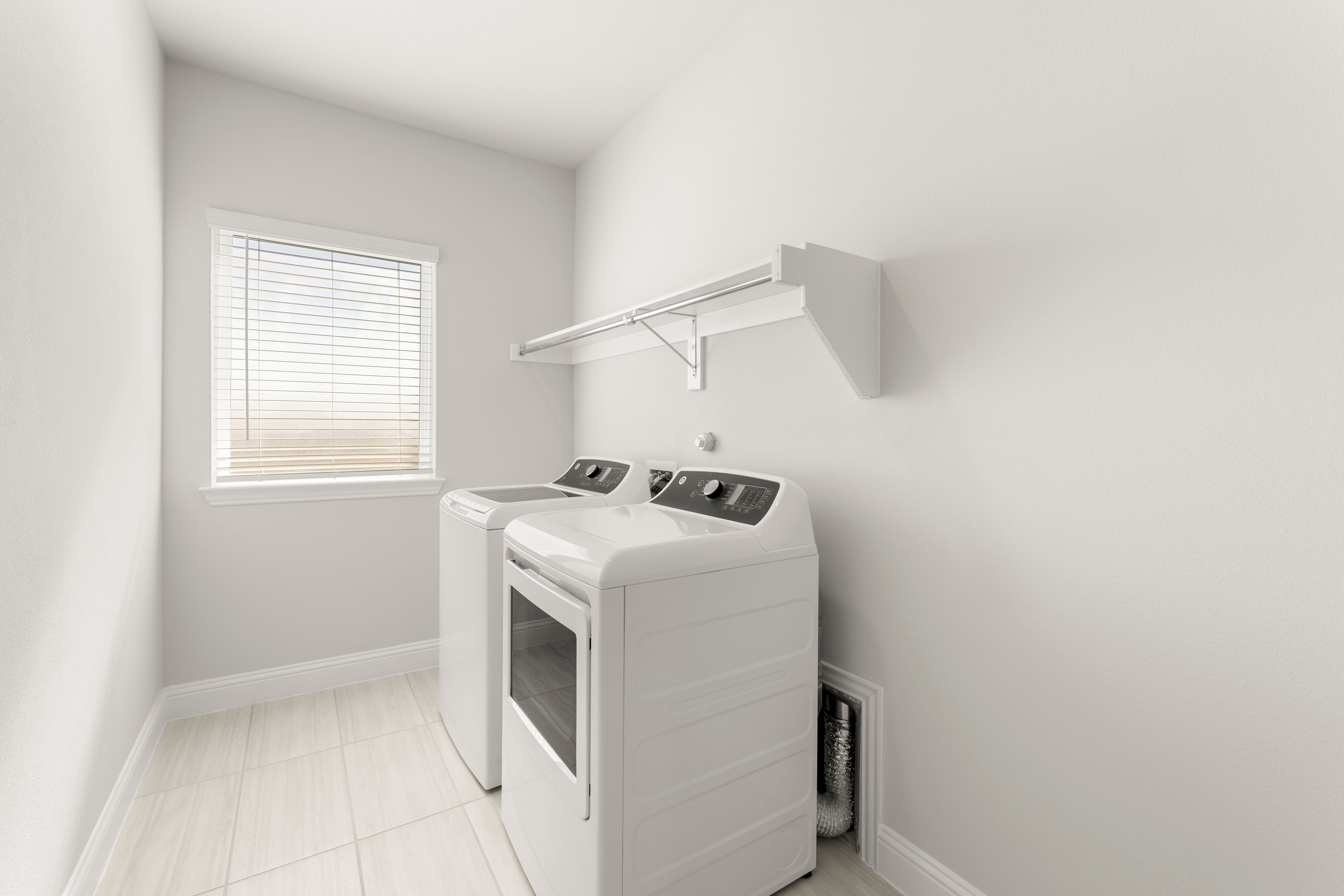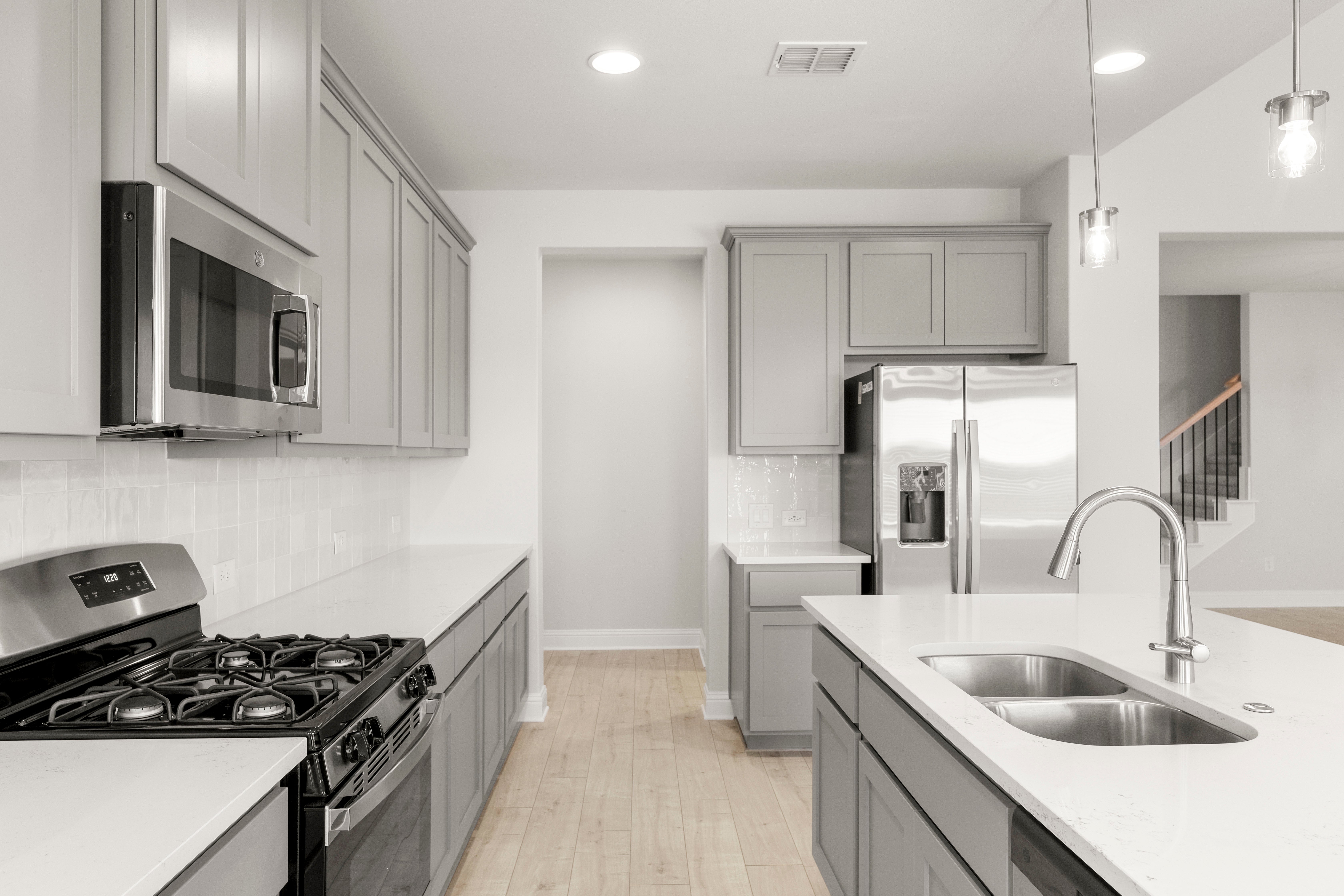 The new two-story home by RockWell Homes offers a spacious and versatile design, featuring 5 bedrooms and 4 bathrooms, along with a dining room, home office, gameroom, and a 2-car garage. The exterior showcases a blend of full brick and stone, complemented by a covered porch and dual-pane energy-efficient windows. Inside, the open-concept layout places the living, kitchen, and dining areas at the back of the home, with the kitchen boasting an island with bar stool seating, solid surface countertops, stainless steel appliances, range, dishwasher, microwave, ceramic tile backsplash, 42-inch cabinets, Delta faucet, recessed can lighting and a walk-in pantry. The living area is bathed in natural light from multiple dual-pane windows. The primary suite, conveniently located on the first floor, features a garden tub, ceramic tile shower with glass enclosure, dual sink vanity, walk-in closet, and upscale Delta faucets. A guest suite is also on the main floor with a full bathroom. Upstairs, secondary bedrooms all include walk-in closets, and the secondary bathrooms offer ceramic tile flooring and tub/shower surround. Additional highlights include a full sprinkler system, landscaping package, full gutters, garage door opener, ceramic tile utility area, vaulted ceilings, fully fenced in private back yard and a new home warranty. An optional media room is available to enhance your living experience even further.