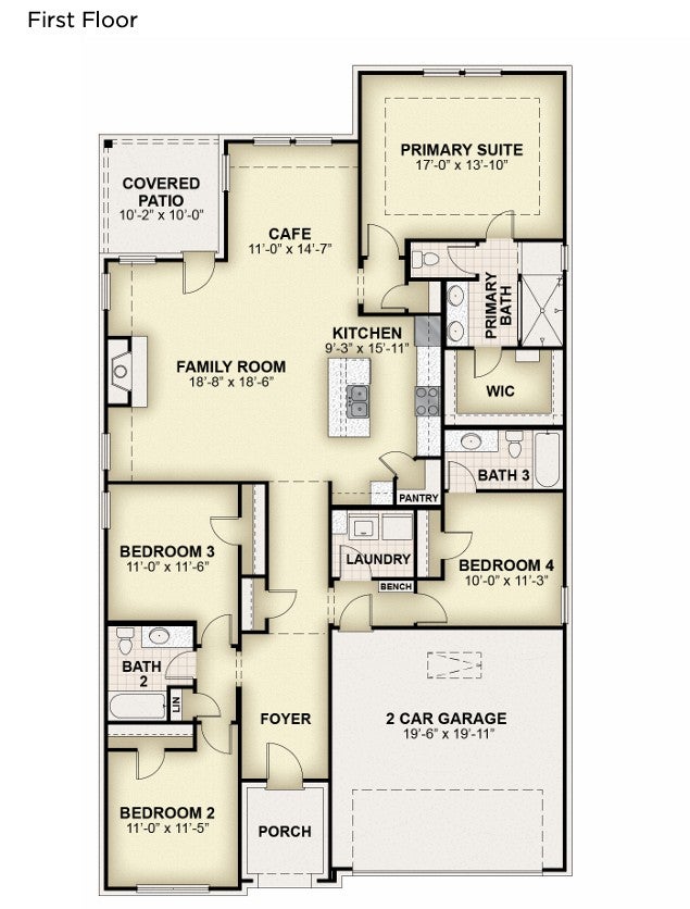 The Valor Plan by RockWell Homes blends modern design, thoughtful details, and everyday comfort into a beautifully crafted new home. Offering 3–4 bedrooms, 2–3 bathrooms, and a 3-car tandem garage, this versatile plan is designed to fit a variety of lifestyles. The heart of the home features a bright, open-concept living area with optional gas fireplace and dual-pane energy-efficient windows that overlook the covered backyard patio. The kitchen is complete with an eat-in bar-top island, stainless steel appliances including gas range, dishwasher, and microwave, solid surface countertops with undermount stainless steel sink, Delta® faucet, ceramic tile backsplash, 42-inch upper cabinetry, upgraded lighting, and a spacious walk-in pantry. The private primary suite, located at the back of the home, offers a peaceful retreat with a luxury bath featuring a garden tub, ceramic tile shower with glass enclosure, ceramic tile flooring, dual vanity under mount sinks with solid surface countertops, upgraded lighting, towel bars, and a generous walk-in closet. Secondary bedrooms include closets and are pre-wired for ceiling fans, while the secondary bath showcases ceramic tile flooring, ceramic tile tub/shower enclosure, Delta® faucets, towel bars, a linen closet, and solid surface countertops with undermount sink. The utility room also features ceramic tile flooring. Additional highlights include a covered front porch, upgraded flooring throughout, 8-foot front door, full brick exterior, full sprinkler system, full gutters, garage door opener, and additional storage. Each home comes fully landscaped with trees, fully fenced private backyard with gate, and smart home features, all built with energy-efficient construction and backed by a 10-year new home structural warranty. The Valor Plan delivers quality, comfort, and style—designed for the way you live today, with the peace of mind you’ll appreciate for years to come.