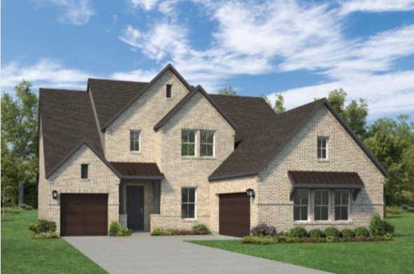 The Edward new home plan by RockWell Homes on an over-sized 70-foot wide homesite offers an expansive and luxurious design with 4 bedrooms, 3 full baths, 2 half baths, private study, media room, gameroom, and three-car garage. The striking exterior features full brick with stone accents, metal roof details, buff mortar, dual-pane energy-efficient windows, covered front porch, covered patio, 8-foot front door, and stylish wood garage doors. Upon entry, you’re welcomed by a grand foyer with soaring ceilings and elegant open-stair railing staircase, flanked by a private study and media room. The open-concept family room showcases soaring ceilings, abundant natural light, and a corner fireplace with views of the private backyard. The chef’s kitchen features a butler’s pantry, spacious walk-in pantry, solid surface countertops, undermount sink, ceramic tile backsplash, GE stainless steel built-in oven, gas cooktop, custom vent hood, dishwasher, recessed can lighting, Delta faucets, upgraded flooring, and 42-inch cabinets. The private primary suite offers a tray ceiling, ceiling fan, dual vanities, ceramic tile flooring, oversized ceramic tile shower with semi-frameless glass enclosure, free-standing garden tub, linen closet, private water closet, and large walk-in closet. A secondary first-floor bedroom includes a private ensuite bath with ceramic tile flooring and tub/shower surround. Upstairs features spacious secondary bedrooms with oversized walk-in closets, well-appointed baths, and an over-sized gameroom ideal for entertaining or second living space. Additional highlights include mud bench/drop zone, over-sized utility room with ceramic tile flooring, fenced backyard with gate, sprinkler system, full gutters, tankless water heater, energy-efficient HVAC, smart home features, garage door openers, abundant storage, full landscaping package, new home warranty, and energy-efficient construction wrapped in full brick for lasting durability and style.