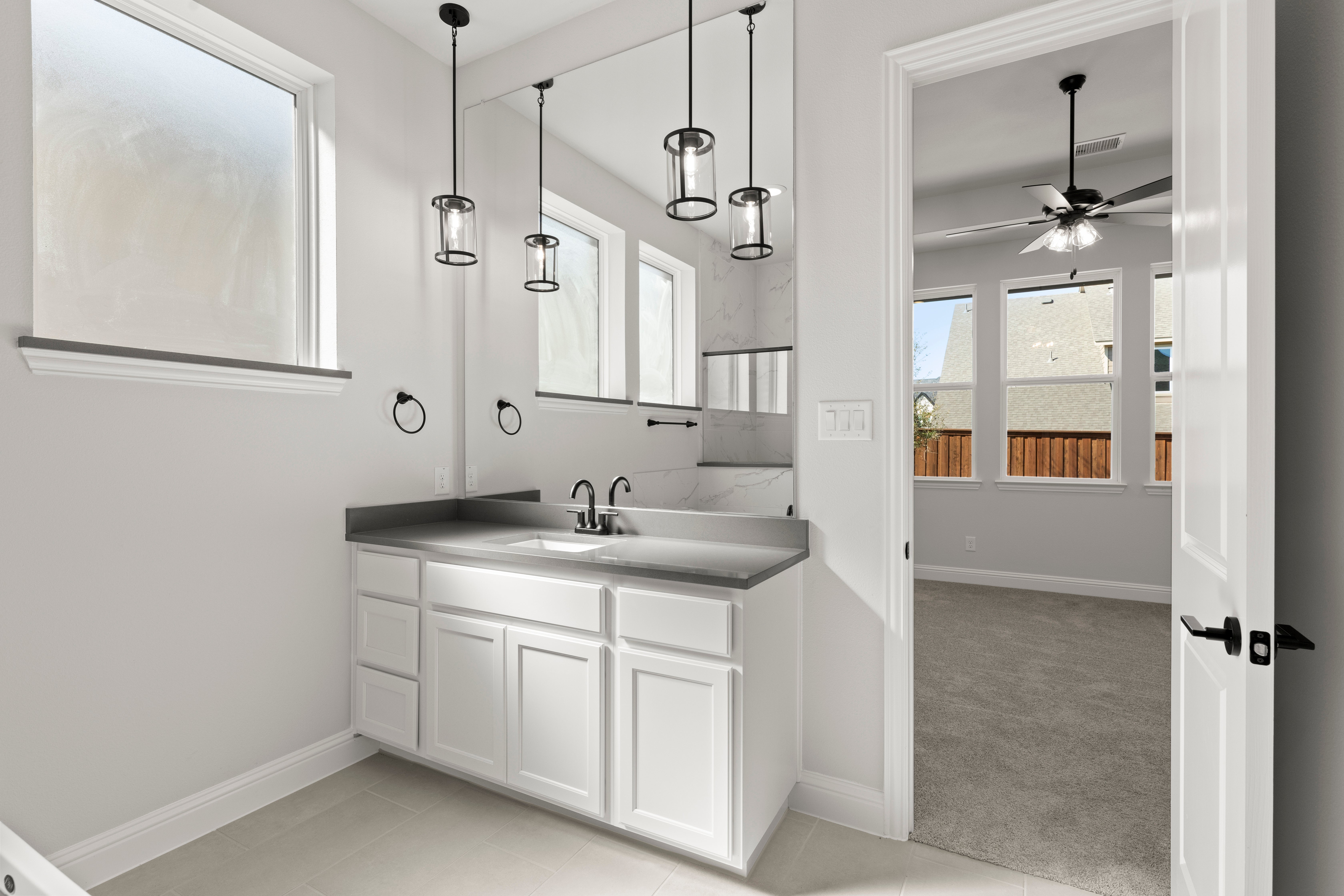Luxurious Henry new home plan by RockWell Homes located on over-sized 60-foot-wide home site offers a blend of elegance and functionality with 4 bedrooms, 3 bathrooms, home office and a two-car garage. The striking exterior combines full brick and stone with metal roof accents, wood garage doors, an 8-foot front door, and a covered patio, setting a sophisticated tone. Upon entry, the foyer opens to a versatile home office area creating a welcoming and functional layout. The open-concept kitchen and living area is designed for both comfort and entertaining, featuring a center eat-in island. The kitchen boasts solid surface countertops, a ceramic tile backsplash, and GE stainless steel appliances, including a built-in oven, gas cooktop, microwave, and dishwasher. Additional features include an undermount sink, 42-inch cabinets, upgraded flooring, recessed can lighting, a walk-in pantry, and a Delta faucet. The living area, ideally located in the heart of the home, offers an optional gas fireplace for added warmth and ambiance. The primary suite, privately situated at the back of the home, includes dual vanity sinks, a free-standing soaking tub, a ceramic tile shower with a semi-frameless glass enclosure, and ceramic tile flooring. It also features Delta faucets and a spacious walk-in closet. Secondary bedrooms are well-appointed with walk-in closets and bathrooms that feature ceramic tile flooring, ceramic tile tub/shower surrounds, Delta faucets, and a lighting package. Additional amenities of the Henry plan include a full sprinkler system, full gutters, a fully fenced private backyard, a landscaping package, a covered patio, energy-efficient HVAC, dual-pane energy-efficient windows, and a garage door opener. This home combines style and practicality to create a luxurious living experience.