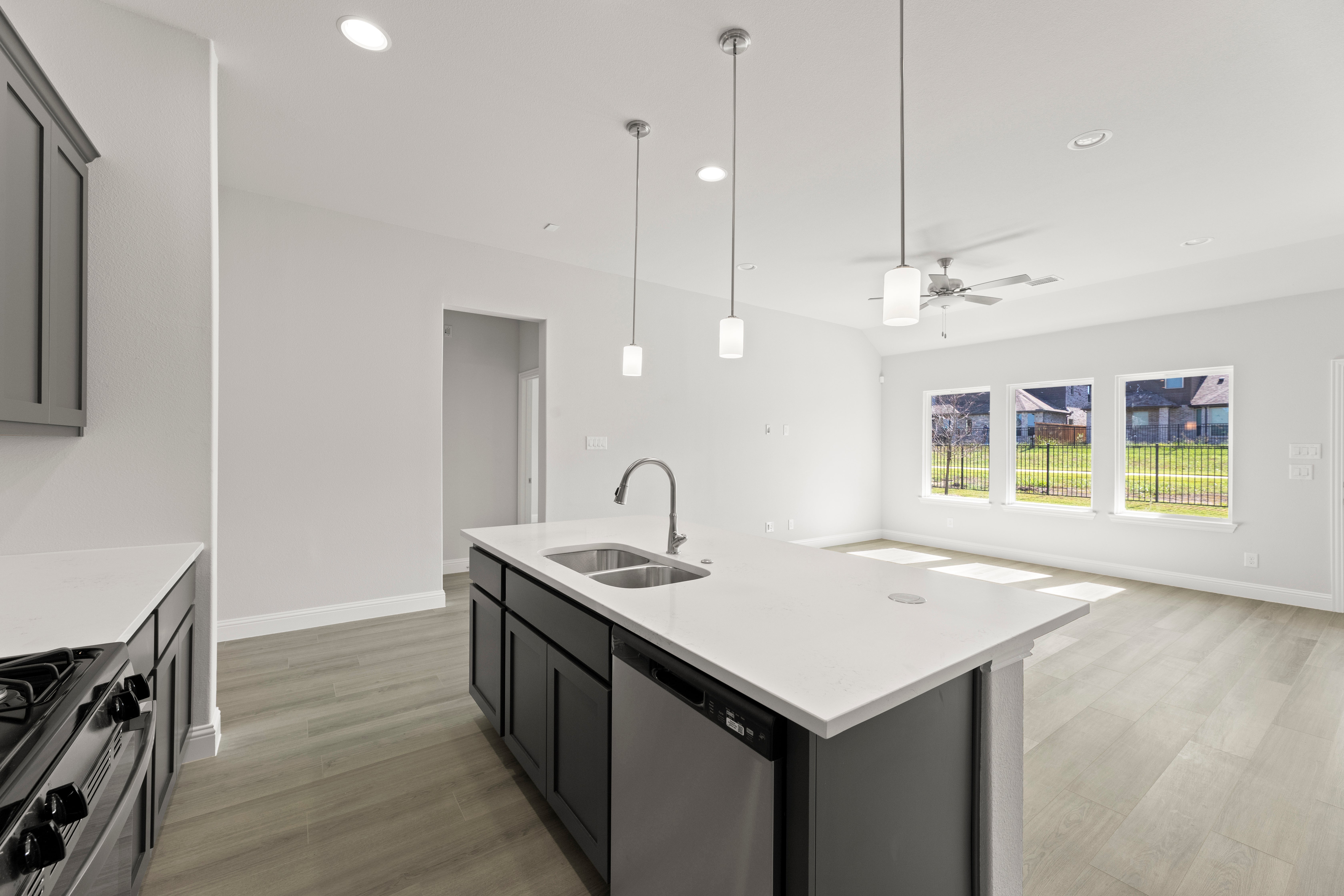 5.25% Fixed Rate (5.302%APR)* New single-story home by RockWell Homes is thoughtfully designed to offer spacious and modern living. Featuring 4 bedrooms and 2.5 bathrooms, this home includes a 2-car garage and a striking exterior with full brick, complemented by a covered porch, covered patio and energy-efficient dual-pane windows. Inside, the open-concept layout seamlessly integrates the kitchen, living, and dining areas, all situated at the back of the home for added privacy and natural light. The kitchen boasts an island with bar-top seating, solid surface countertops, an undermount sink, stainless steel appliances, dishwasher, microwave, gas range oven, ceramic tile backsplash, Delta faucet, lighting package, 42-inch upper cabinets, upgraded flooring, lighting package and a walk-in pantry. The primary bedroom suite, also located at the back of the home, offers dual sink vanities, a garden tub, a ceramic tile shower with a glass enclosure, ceramic tile flooring, lighting package, upscale cabinetry, towel bars and upscale Delta faucets. Secondary bathrooms feature ceramic tile flooring and tub/shower enclosures, lighting package, Delta faucets, upscale cabinets, under mount sinks and towel bars. Additional highlights include a full landscaping package, a full sprinkler system, full gutters, a garage door opener, a ceramic tile utility area, 8-ft front door and a new home warranty, ensuring comfort and convenience in every detail.